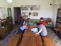 V klubovně máme dvě velké místnosti, WC a kuchyňku s dřezem, sporákem a základním nádobím.